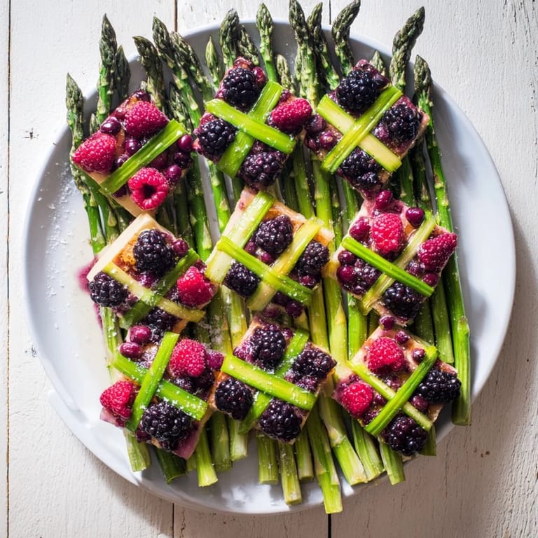 This is the kind of dish that rewards a little advance planning. You can blanch asparagus and prepare chives several hours ahead, storing them separately on paper towels in the fridge. The actual assembly takes about 10 minutes, which means you can build the lattice right before guests arrive or up to 2 hours before and keep it chilled. The vegetables stay crisp, and the berries hold their brightness.