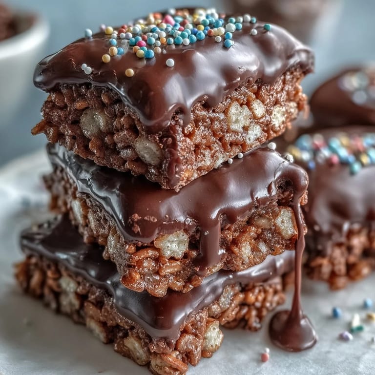 Save Last summer, my niece asked if we could make "fancy treats" for her sleepover, and I knew exactly where to start. We pulled out the cereal, marshmallows, and a mountain of chocolate chips, and within minutes the kitchen smelled like a carnival. She stood on her tiptoes to watch the chocolate melt, mesmerized by how glossy it became. When we poured it over the crispy base and scattered sprinkles on top, she squealed so loud the neighbors probably heard. That batch didn't even last until her friends arrived.
