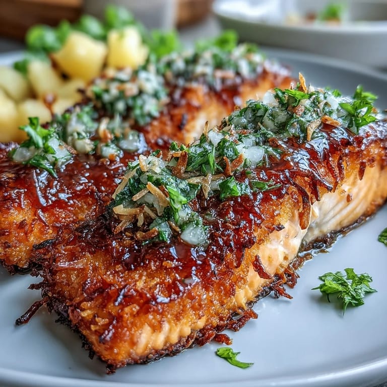 Save The first time I made this coconut crusted salmon, my kitchen smelled like a tropical vacation had collided with a Sunday dinner. I was experimenting with what I had on hand, unsure if the sweet coconut would actually work with rich salmon. When that crust started toasting golden in the pan, I knew I was onto something special. The pineapple salsa was an afterthought, just trying to use up fruit sitting on my counter, but it became the essential bright note that ties everything together.