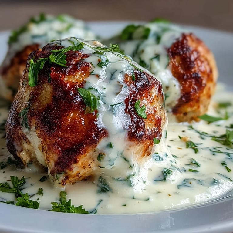 Save There's something about the aroma of garlic and cream hitting your kitchen that just feels like comfort wrapped in a skillet. I stumbled onto these meatballs on a random Tuesday when I was craving something hearty but didn't want to spend hours at the stove, and what emerged was this perfect balance of juicy turkey nestled in the silkiest garlic cream sauce. The ranch seasoning does the heavy lifting flavor-wise, so you're really just orchestrating a few simple steps into something that tastes far more impressive than the effort requires.