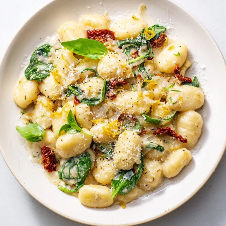 Save There's something about the way cream coats pillowy gnocchi that just stops time in a kitchen. I discovered this Tuscan version on a rainy Tuesday when I had half a container of sun-dried tomatoes sitting in my fridge and zero inspiration, so I threw together what felt right and somehow ended up with something I couldn't stop eating. The garlic and Parmesan do most of the heavy lifting, but it's really that moment when the spinach wilts into the sauce that makes you realize this isn't a weeknight dinner, it's a small celebration on a plate.