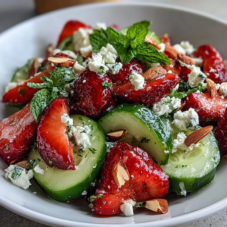 Ensure you slice the cucumber thinly to maintain a delicate crunch without overpowering the sweet strawberries. Whisking the dressing until fully emulsified helps it coat the salad evenly, ensuring every bite bursts with flavor. For added creaminess, consider gently folding in avocado slices just before serving.