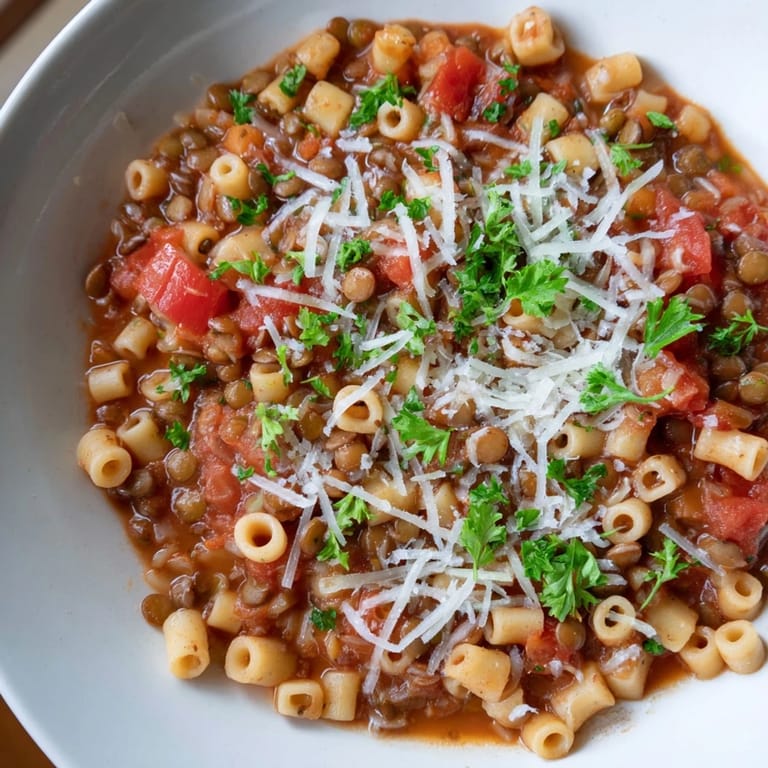 There's an elegance in simplicity that took me years to understand. This soup doesn't ask for exotic ingredients or complicated techniques—it asks only that you show up with decent vegetables, a patient hand, and enough time to let flavors mingle. The lentils do the heavy lifting, turning humble legumes into something substantial, and the pasta adds just enough comfort to make you want seconds. What started as a practical weeknight dinner turned into something I make when I want to feel grounded, or when someone I care about needs feeding.
