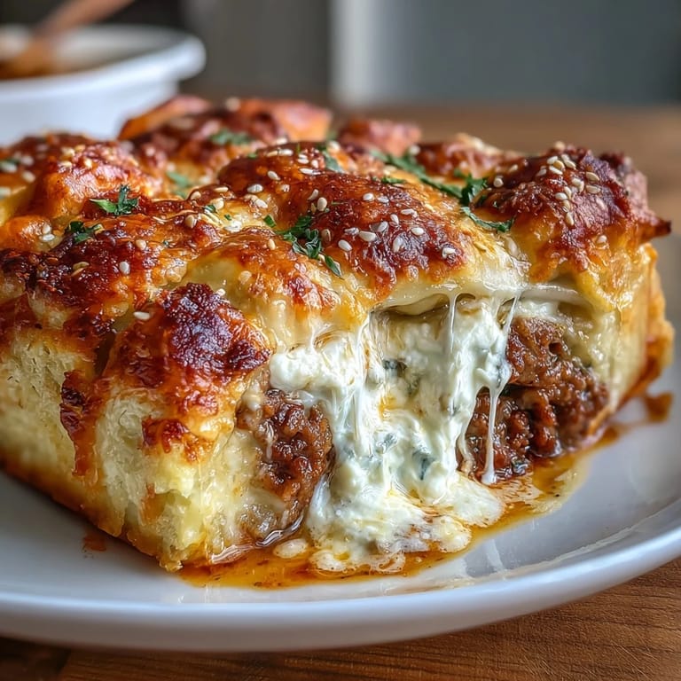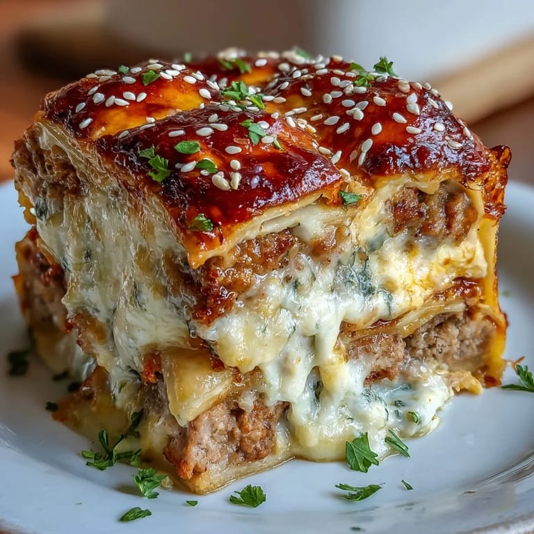 Save Experience the ultimate fusion of comfort foods with this Dumpling Lasagna Bake. By combining the juicy, aromatic fillings of traditional Asian dumplings with the hearty, layered structure of a classic Italian lasagna, this dish offers a unique dining experience. It features layers of seasoned ground pork, tender napa cabbage, and chewy dumpling wrappers, all brought together by a savory sauce and a blanket of melted mozzarella cheese.