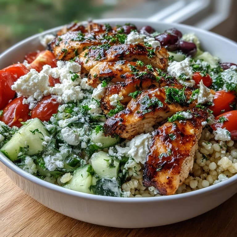 Save There's something about a bowl that just works on a Tuesday afternoon—no fuss, everything in one place, and somehow it feels like you're eating somewhere fancy without leaving your kitchen. I discovered these Mediterranean pearl couscous bowls while experimenting with leftover chicken and a handful of pantry staples, and what started as a quick lunch became the thing I now make whenever I need to feel grounded and fed at the same time. The lemon-feta chicken strips bring this bright, salty richness that plays beautifully against the chewy couscous and crisp vegetables, and the dressing ties it all together like a warm conversation over dinner.
