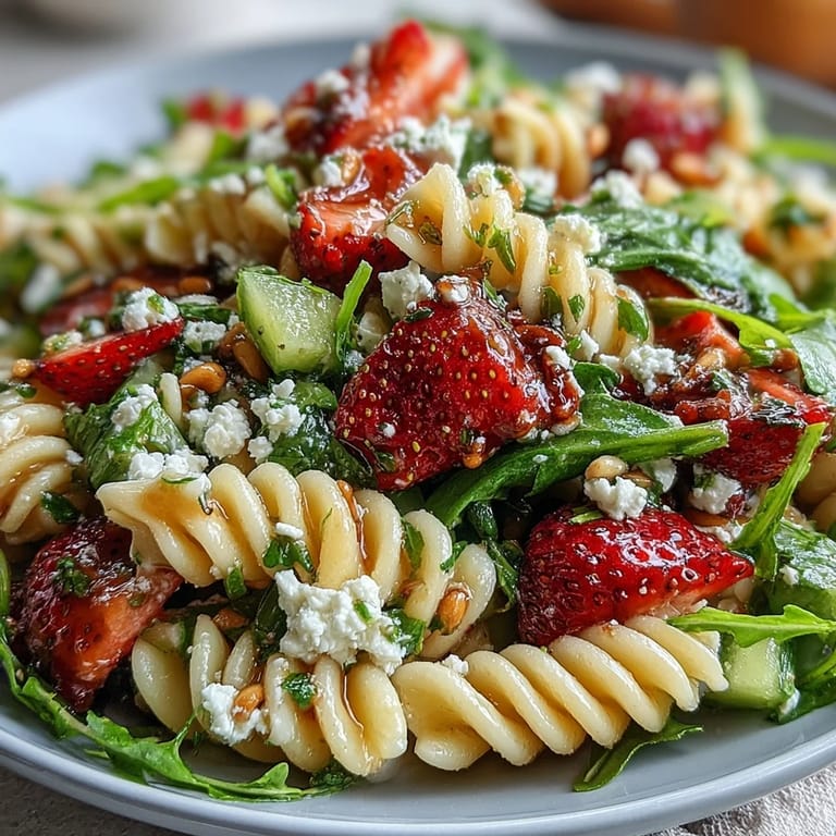 Save The first time I stumbled into making this spring pasta salad, I had been craving something bright after a string of rainy days. Slicing strawberries always fills the kitchen with their sweet fragrance, and hearing the pasta bubble away became oddly comforting. I was skeptical about combining berries and cheese, but curiosity won out. Sometimes, even a simple lunch can surprise you — that's how this colorful bowl earned its place in my kitchen. The fresh pop of arugula and basil reminds me of gardens waking up after winter.