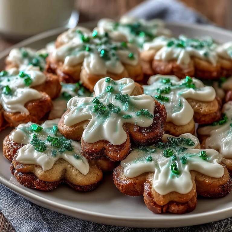 Save Celebrate St. Patrick's Day with joy and sweetness by baking these festive sugar cookies adorned with vibrant buttercream outlines. These soft, tender cookies feature delightful shamrock shapes and shimmering green and gold hues, making them perfect for sharing cheer with family and friends.