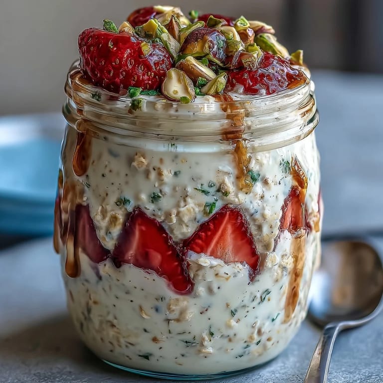 Save There's something magical about waking up to a breakfast that's already prepared and waiting for you. Strawberry and pistachio overnight oats with honey bring together the natural sweetness of ripe strawberries, the satisfying crunch of pistachios, and the creamy comfort of oats soaked in milk and yogurt. This make-ahead breakfast is not just convenient—it's a celebration of simple, wholesome ingredients that nourish your body and delight your senses. Whether you're rushing out the door on a busy weekday or enjoying a leisurely weekend morning, these overnight oats deliver fresh flavor and lasting energy in every spoonful.