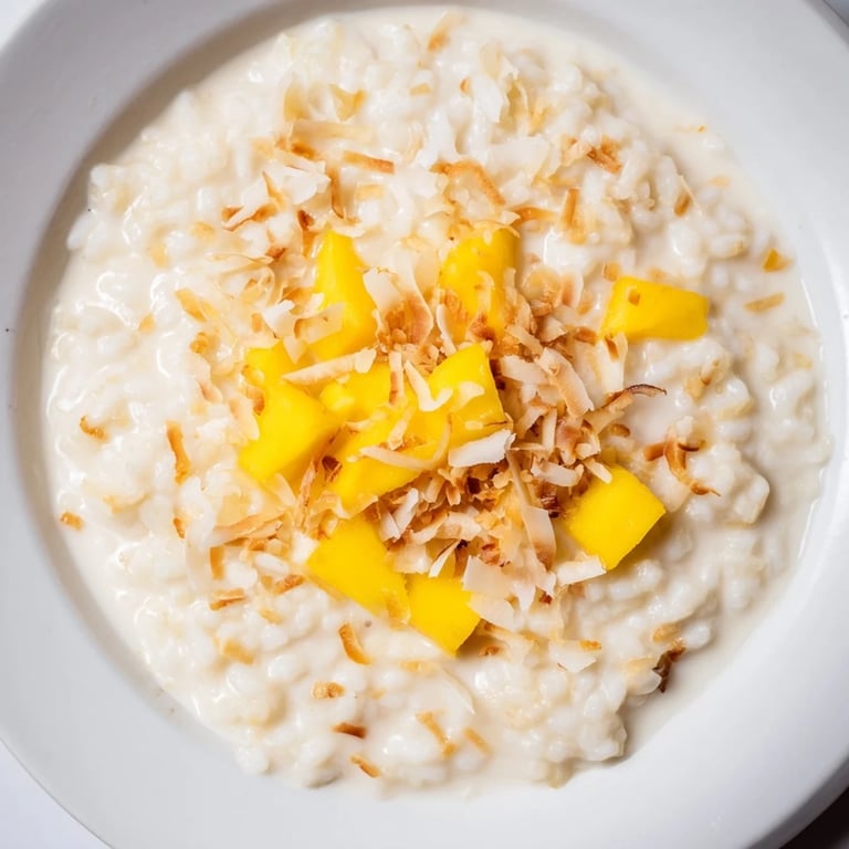 Save There's something about the smell of toasted coconut that stops me mid-morning. Years ago, I was searching for a way to use up a can of coconut milk and leftover arborio rice, and this pudding emerged almost by accident. What started as a practical solution turned into a bowl of pure comfort, the kind that tastes like a tropical escape without leaving the kitchen.